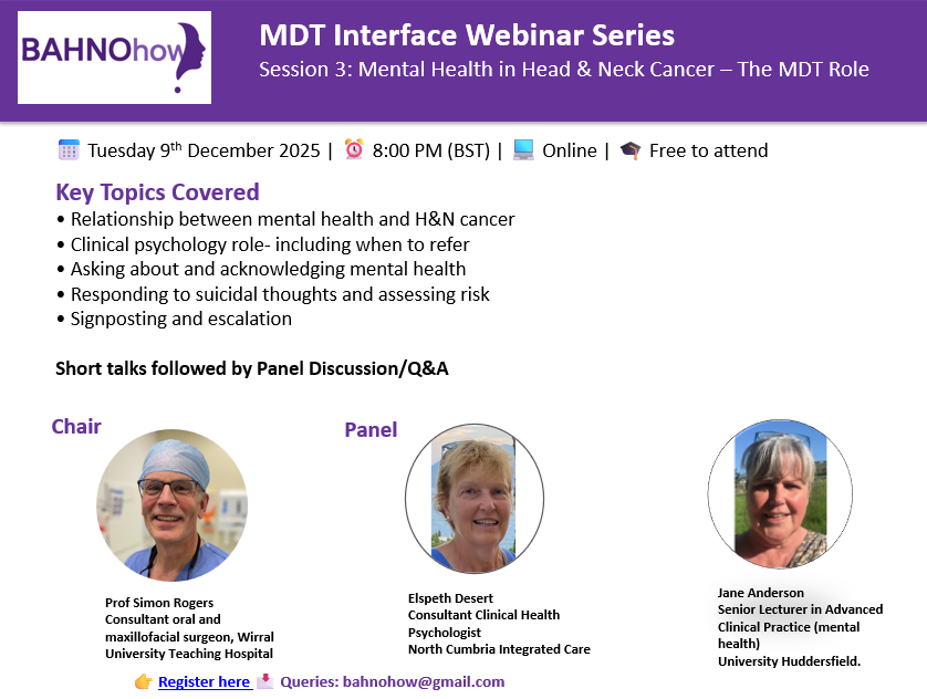 Panel Members: Elspeth Desert, Consultant Clinical Health Psychologist, North Cumbria Integrated Care. Jane Anderson, Senior Lecturer in Advanced Clinical Practice, University of Huddersfield.